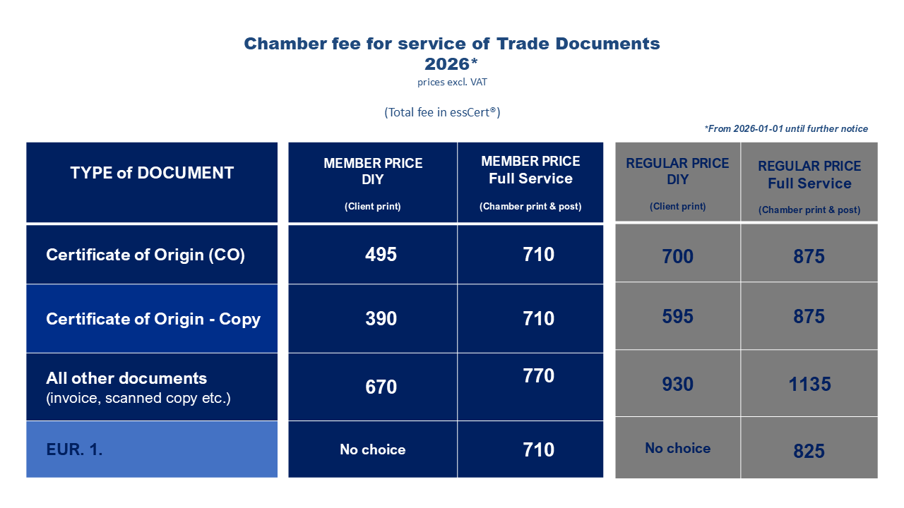 Vi uppdaterar priser på handelsdokument fr.o.m 26-01-01